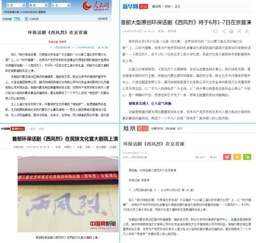 至此,作为环境文化周的重要活动之一,话剧《西风烈》已在京成功演出了5场,近5000公众走进剧场观看了演出。人民网、新华网、中国网、网易新闻等十余家媒体对活动进行了报导。