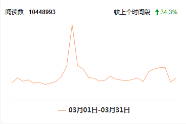 数据显示:3月1日至31日,京环之声微博阅读数为10448993次,环比提高34.3%。