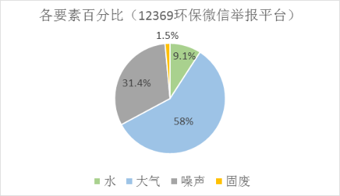 大气污染方面,6月份反映餐饮油烟最多,占涉大气举报的26.9%,其次为反映工业废气及机动车尾气,分别占涉大气举报的24.7%、19.9%;噪声污染方面,反映社会生活噪声最多,占涉噪声举报的69.5%;水污染方面,反映地表水污染最多,占涉水举报的83.7%。